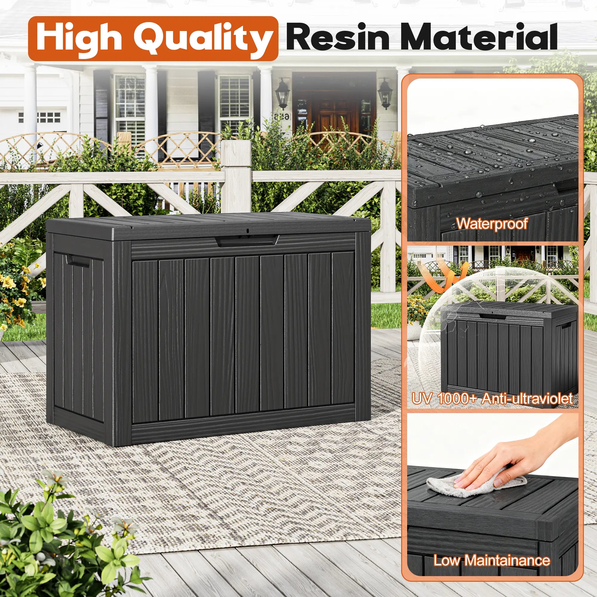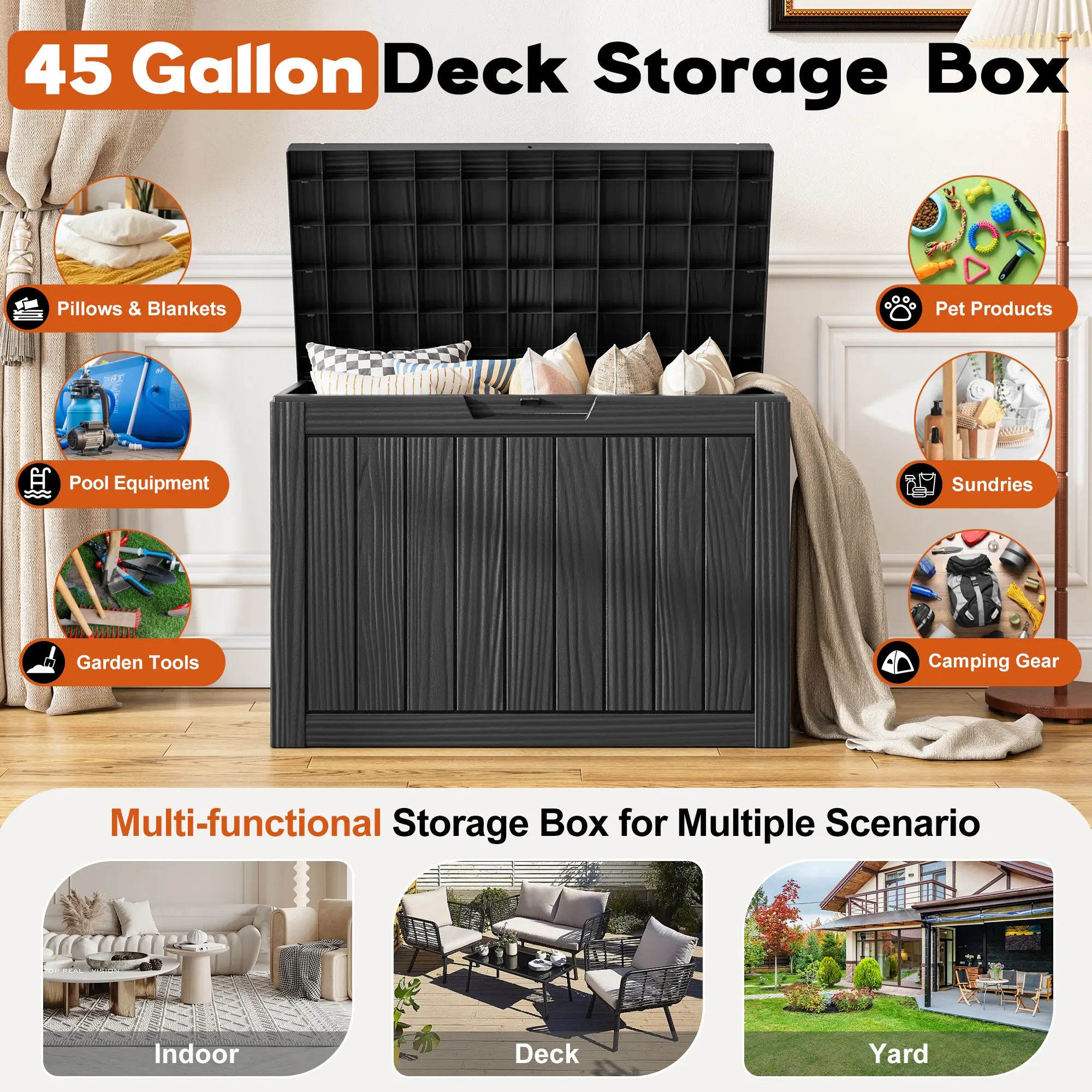 [This 45-gallon outdoor storage box is ideal for patio, garden, and poolside storage. 🌿, Made from weatherproof resin, it ensures your items stay protected from the elements. 🌧️, The box is versatile, suitable for various outdoor storage needs. ]