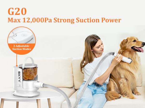 [【Vacuum Suction 99%25 Pet Hair】5-in-1 dog grooming kit with vacuum function, with a strong suction force of up to 12000 Pa, can collect 99%25 of pet hair into a vacuum container, 【Low Noise Design】Our dog vacuum for shedding grooming have undergone special noise reduction treatment, with a noise level below 60 dB. And there are 2 adjustable suction levels to choose from. We suggest massaging and feeding your pet before trimming their hair, so that your dog won't feel scared when grooming., 【Comfortable Guard Combs】Adjustable electric clipper with guide combs. You can choose the appropriate length through the buttons of the electric clipper and use a detachable guidance comb to trim pet hair of different lengths, 【1.5L Larger Dust Cup】dog grooming vacuum comes with a 1.5L dust cup, which is large enough even for large dogs.Removable dust cup can reduce cleaning frequency and improve trimming efficiency. Simply pull the quick release buckle on the dust collection cup to clear it.Suitable for small, medium-sized and large dogs., 【2.46ft line length & 4.9ft extended hose】Pet grooming vacuum for dogs has everything you need to dogs and cats. 12.46ft line length, 4.9ft long hose provides more flexible performance, keeping your pet away from motor noise. You can decorate your pets in the yard or large living room without distance restrictions]