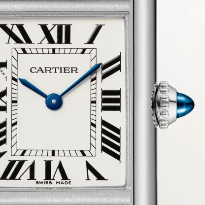 Luxuriously refined in stainless steel with a small size, this Tank Must features a black leather strap for a sleek finish.