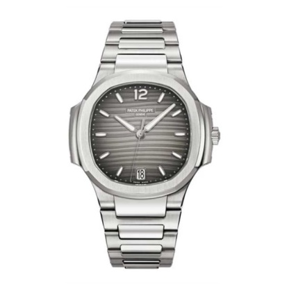 The Ladies Automatic Nautilus wristwatch in stainless steel emphasizes its casual elegance and very feminine style with two new dial colors: silvery opaline and smoke gray.