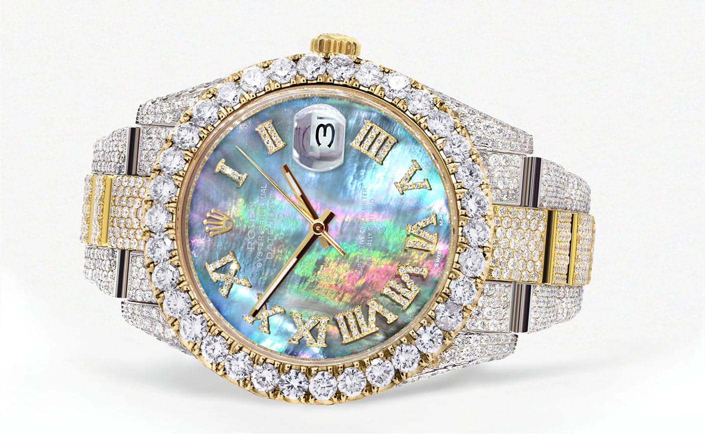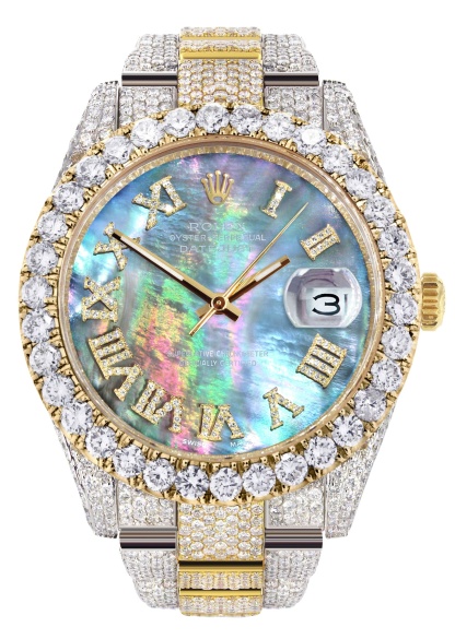 Diamond Iced Out rothtlex Datejust 41 | 25 Carats Of Diamonds | Abalone Mother Of Pearl Dial | Two Tone | Oyster Band
