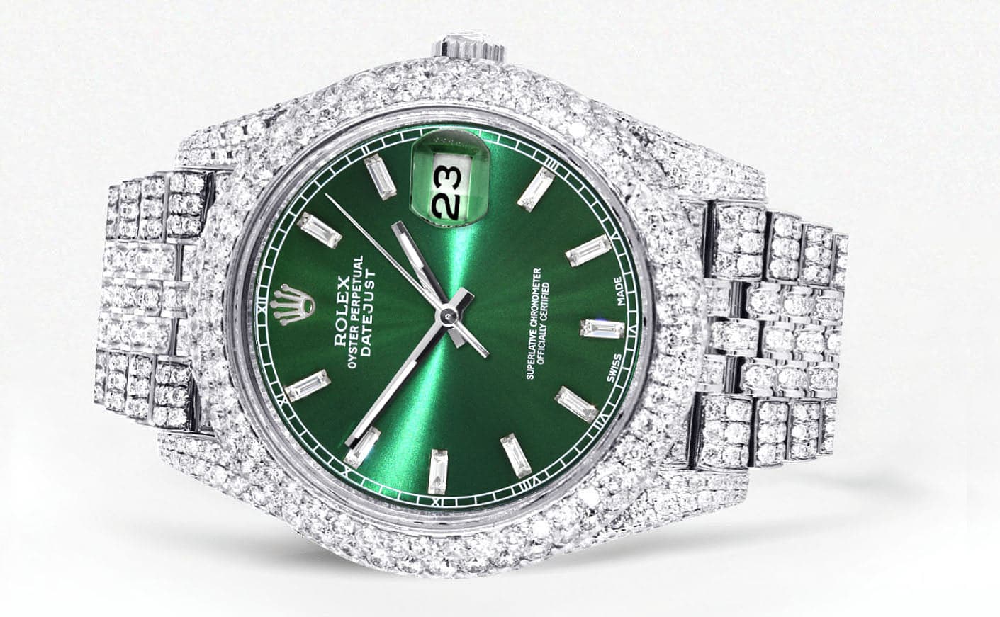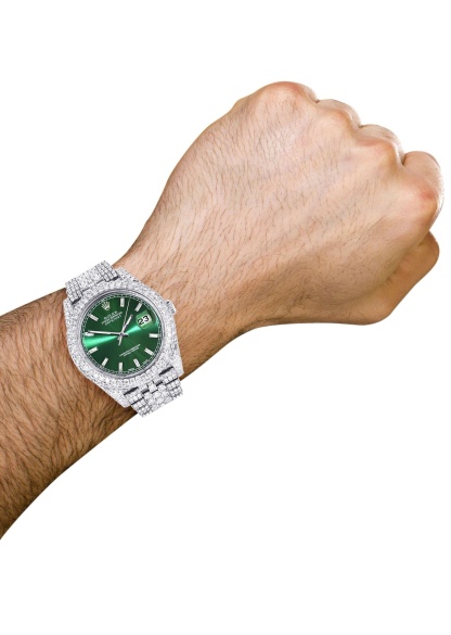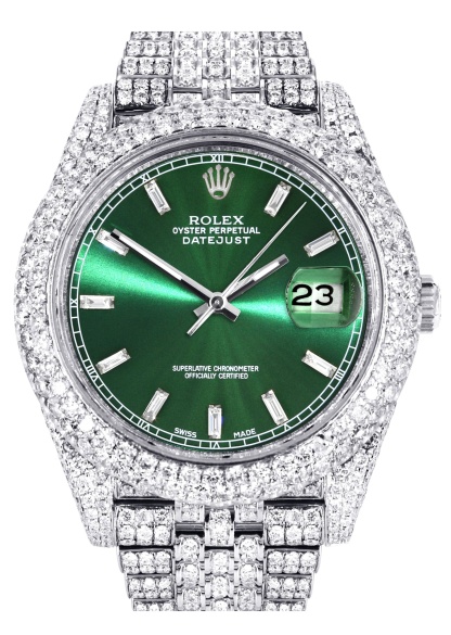 Diamond Iced Out rothtlex Datejust 41 | 25 Carats Of Diamonds | Custom Green Diamond Dial | Two Row | Jubilee Band
