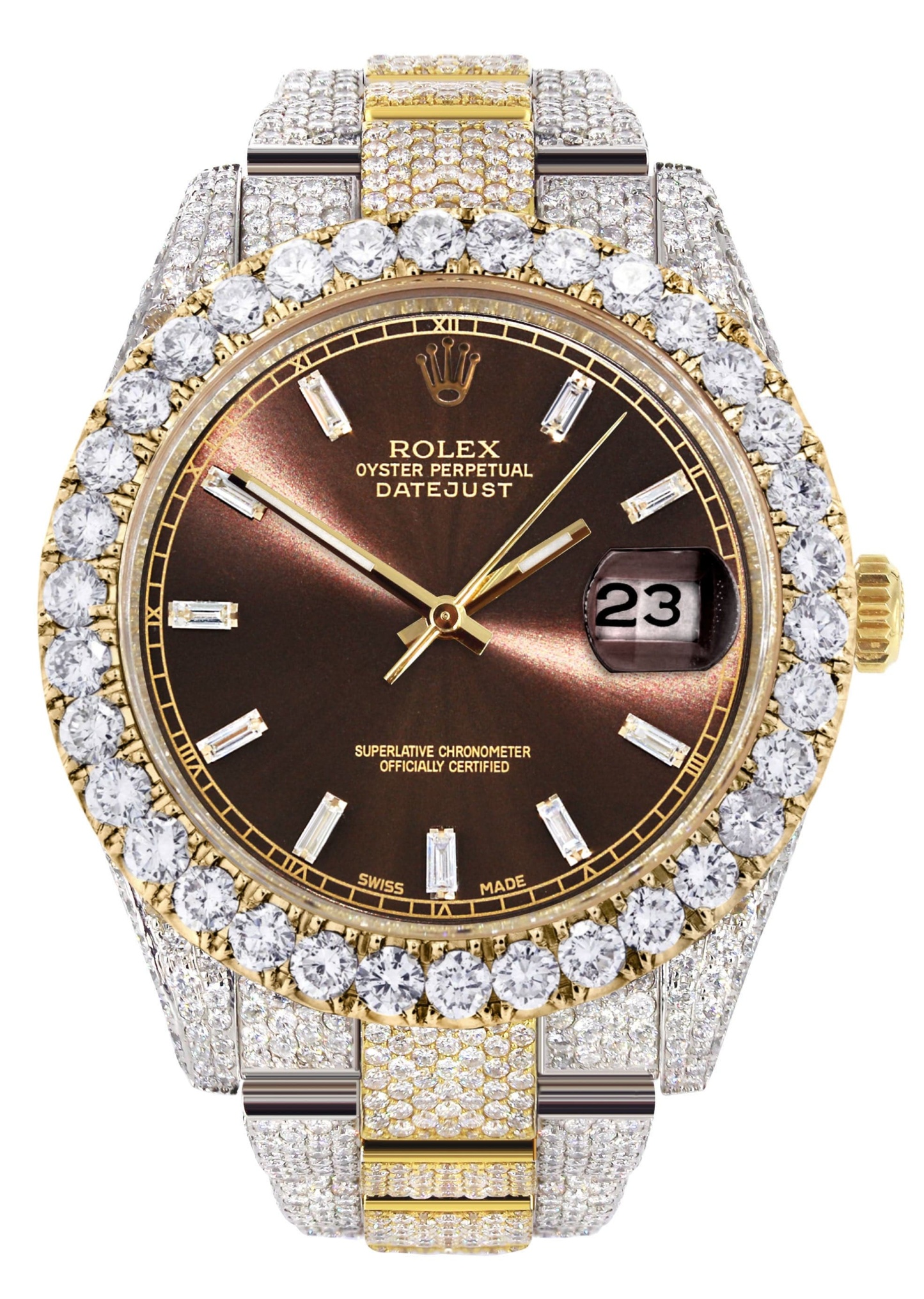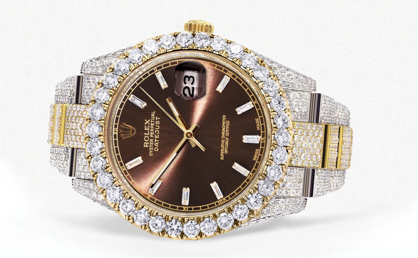 Diamond Iced Out rothtlex Datejust 41 | 25 Carats Of Diamonds | Morocco Brown Diamond Dial | Two Tone | Oyster Band