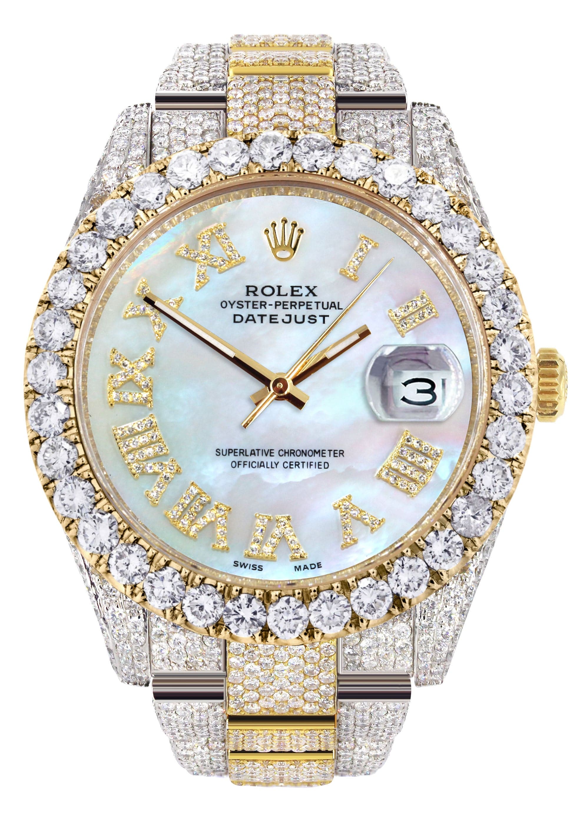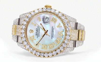 Diamond Iced Out rothtlex Datejust 41 | 25 Carats Of Diamonds | Mother Of Pearl Dial | Two Tone | Oyster Band