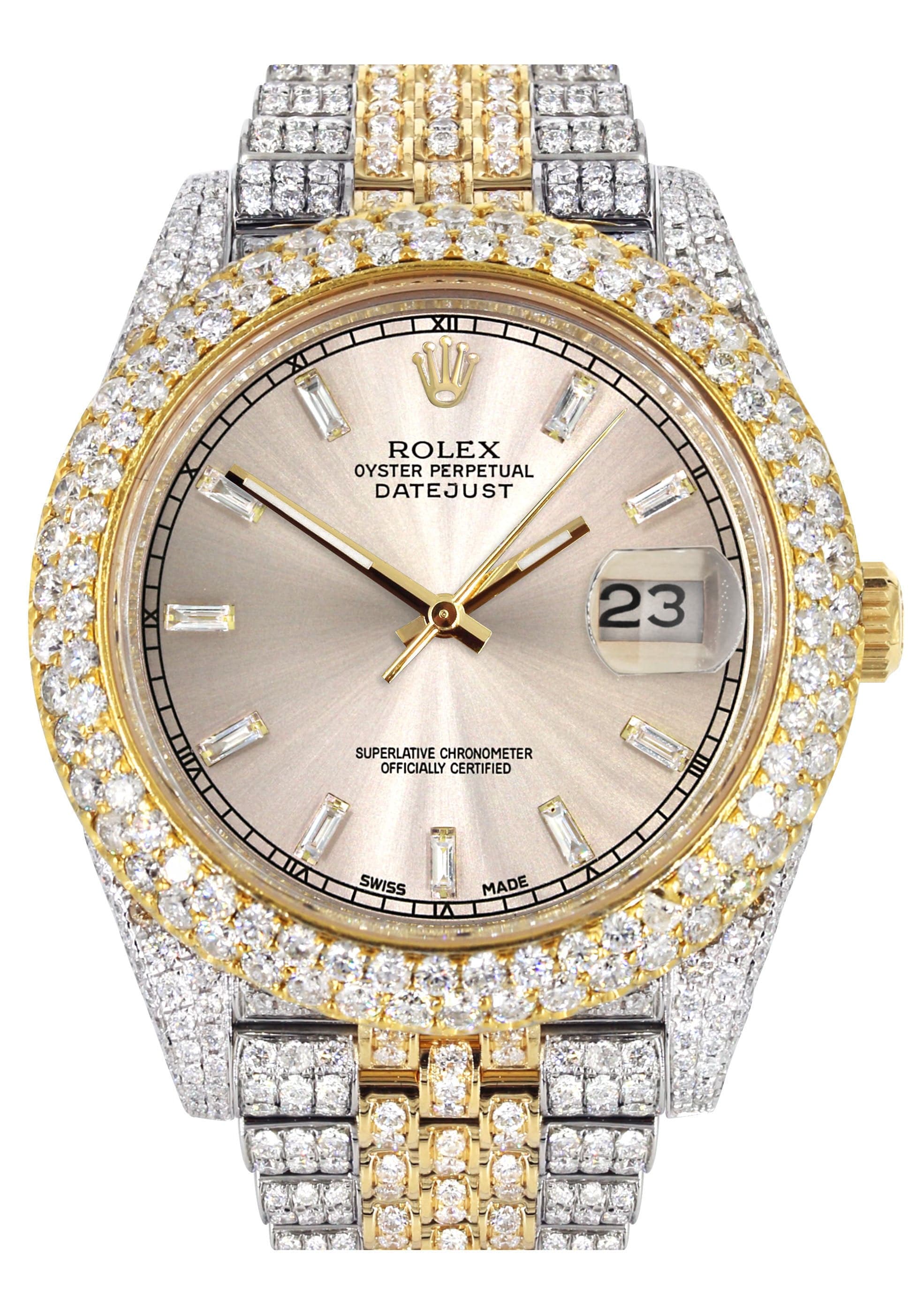 Iced Out rothtlex Datejust 36 MM | Stainless Steel | 16.5 Carats of Diamonds | Full Diamond Roman Diamond Dial | Jubilee Band | Model 116200