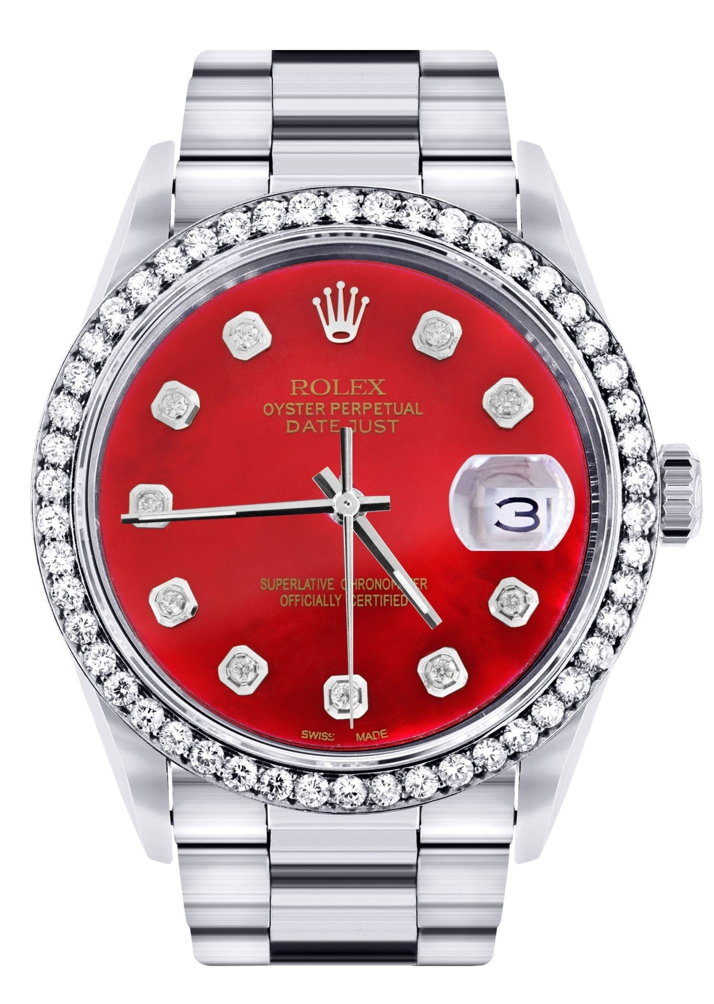 Rothtlex Datejust 36MM with a Oyster Band. Customizable Diamond Bezel From 1.00-4.00 Carat. Below are more details of the watch.