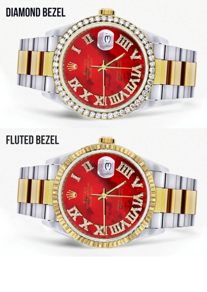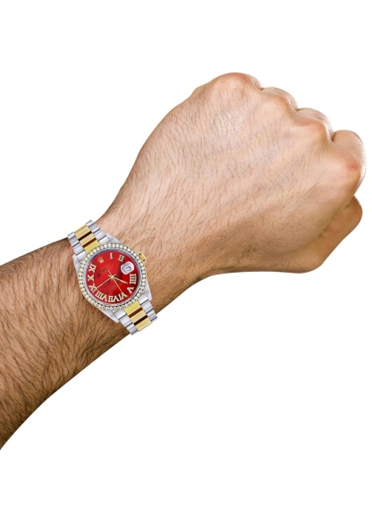 Gold & Steel Rothtlex Datejust Watch 16233 for Men | 36Mm | Diamond Red Roman Dial | Oyster Band