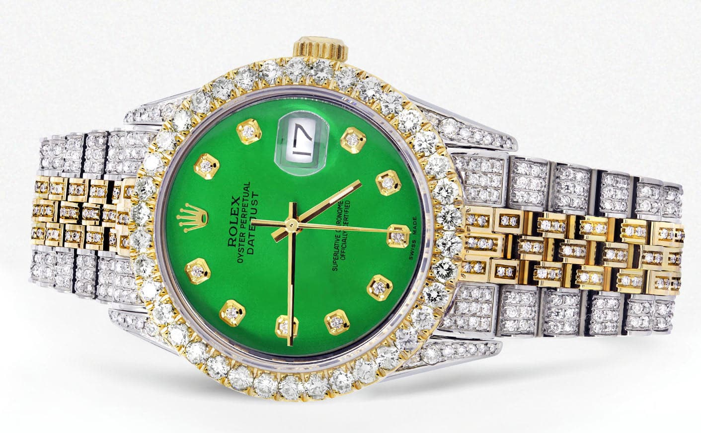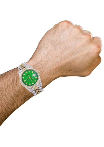 Iced Out Rothtlex Datejust 36 MM | Two Tone | 10 Carats of Diamonds | Green Diamond Dial