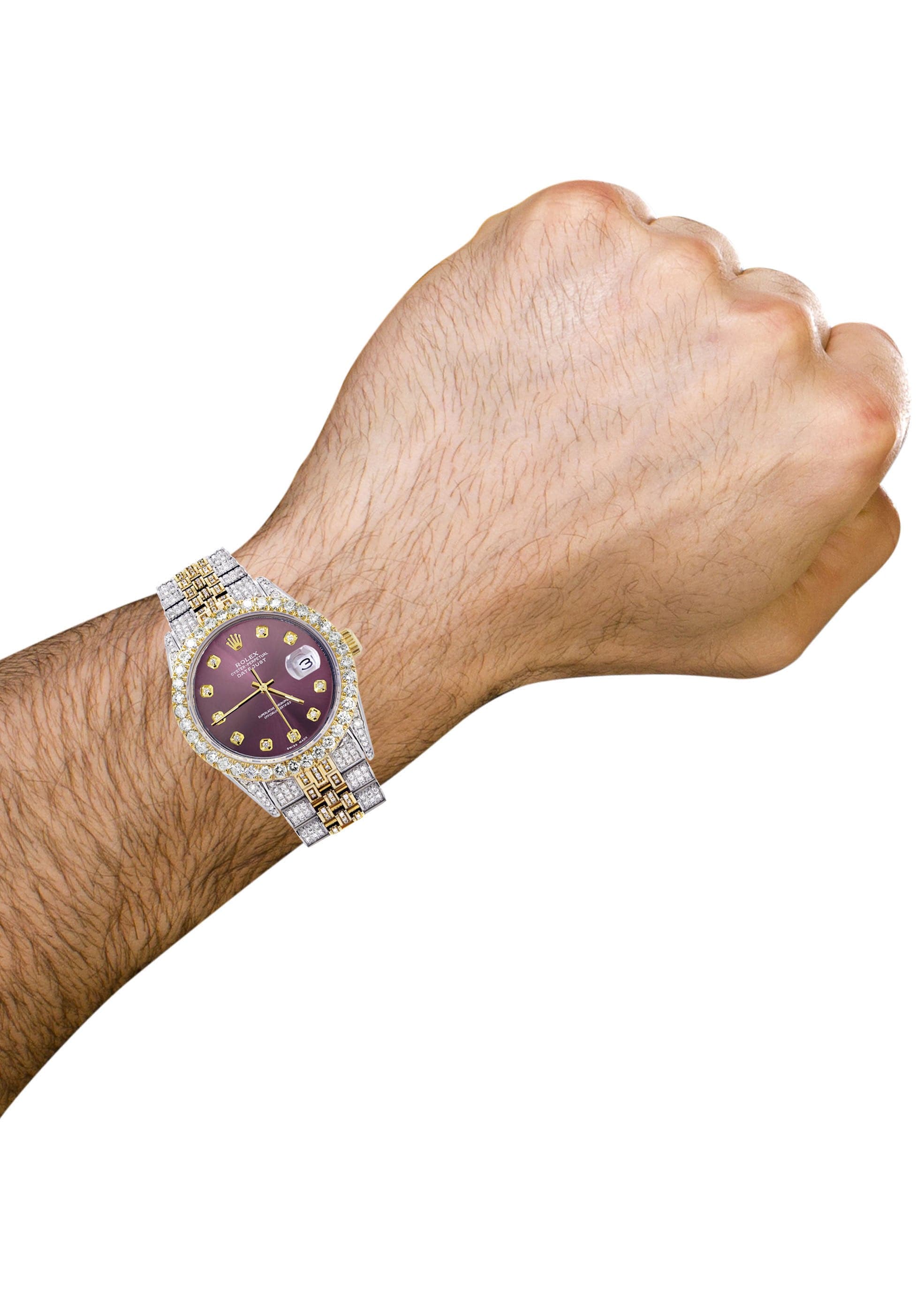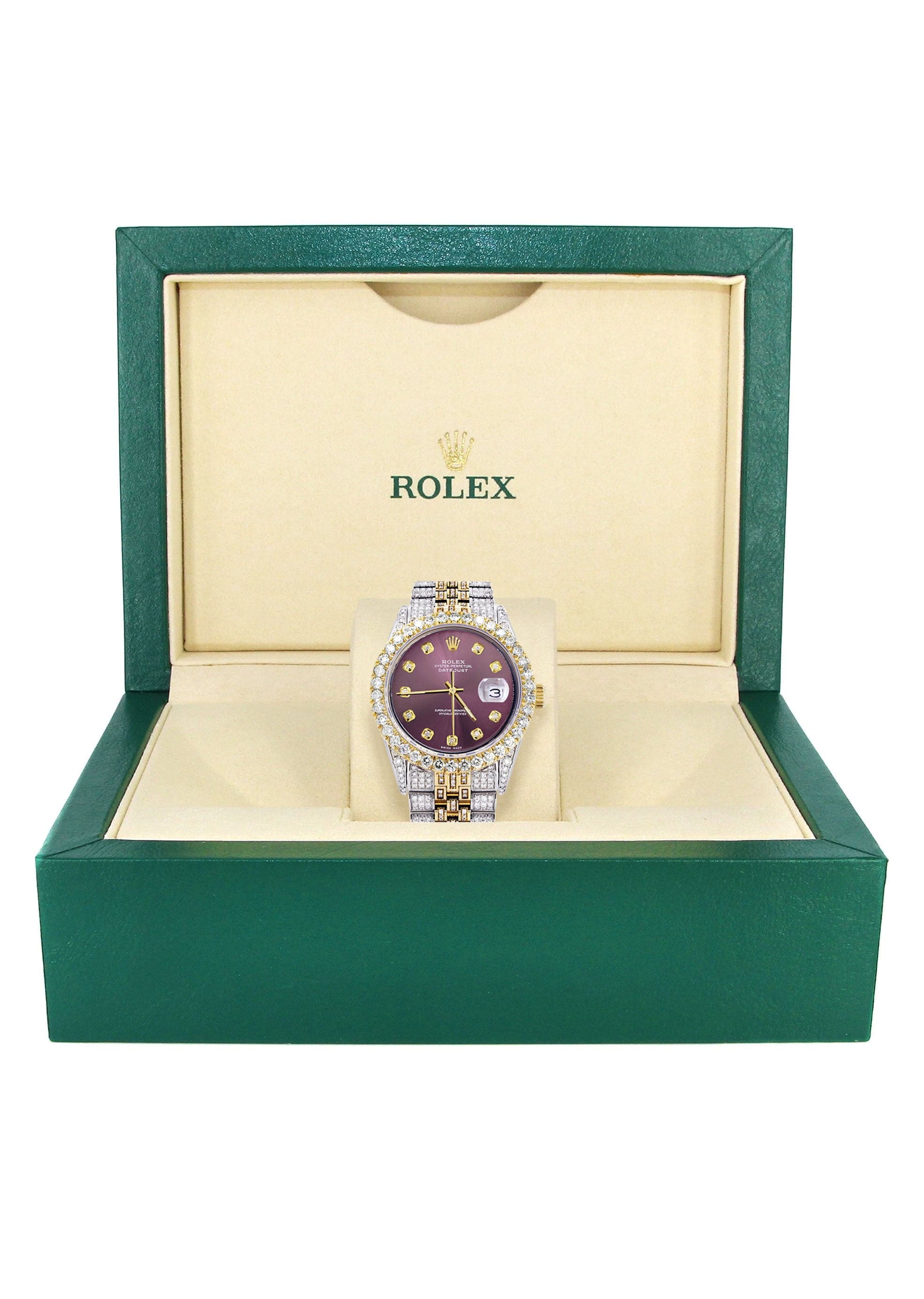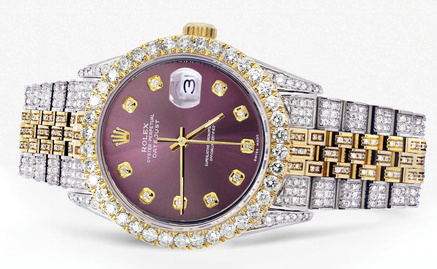 Iced Out Rothtlex Datejust 36 MM | Two Tone | 10 Carats of Diamonds | Purple Diamond Dial