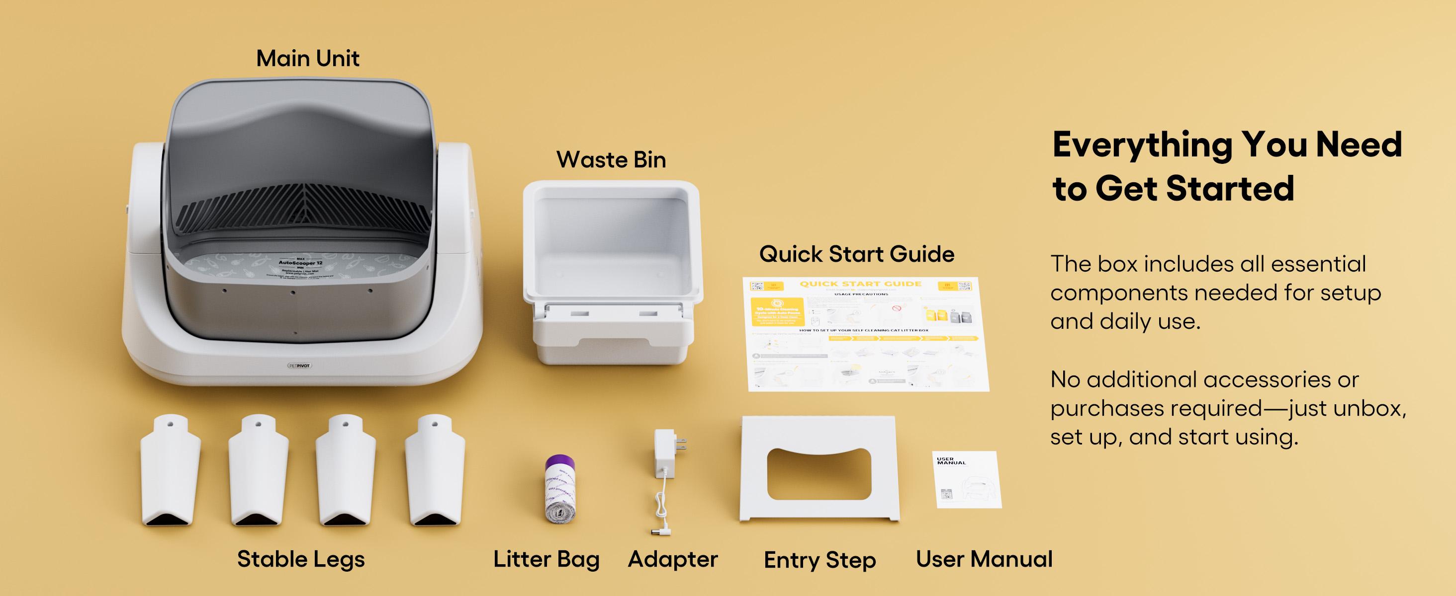 PetPivot AutoScooper 12 Open-Top Self-Cleaning Cat Litter Box – Sealed Waste Drawer, Includes Trash Bags & Entry Step