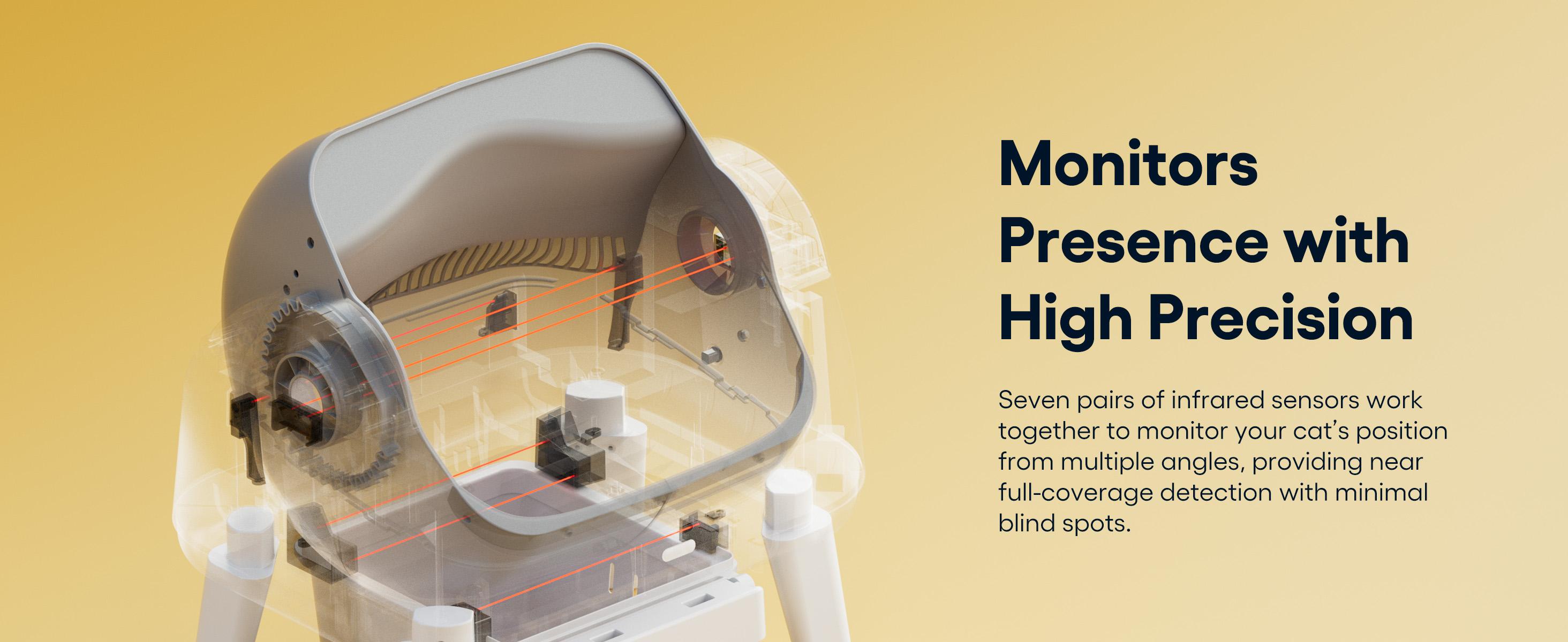 Seven pairs of infrared sensors detect your cat from multiple angles.