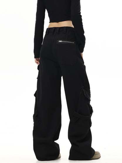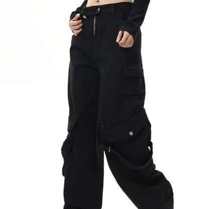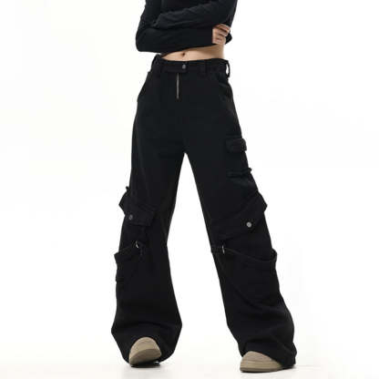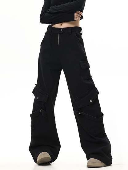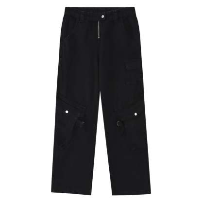 Straight Washed Drawstring Pants With Drawstring