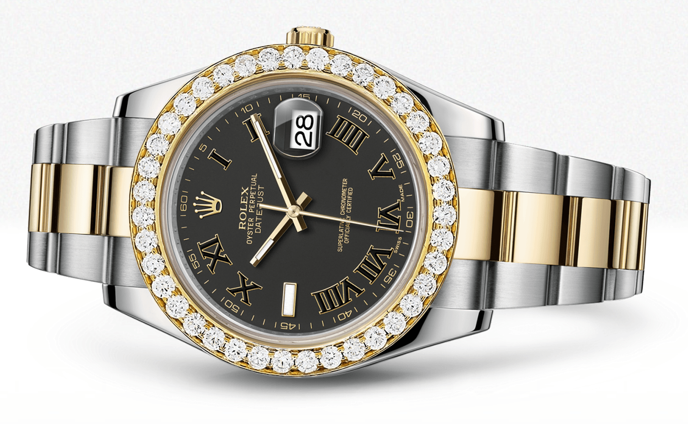 Rothtlex Datejust Ii Black Dial - Black And Gold Roman Numerals With 5 Carats Of Diamonds
