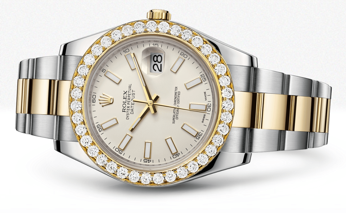 Rothtlex Datejust Ii Ivory Dial - Index Hour Markers With 5 Carats Of Diamonds