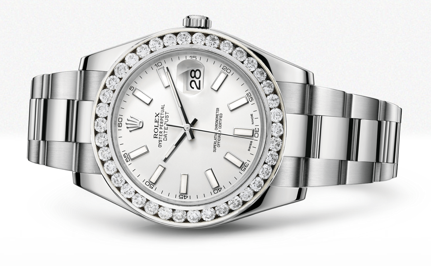 Rothtlex Datejust Ii White Dial - Index Hour Markers With 5 Carats Of Diamonds