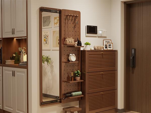 3-in-1 Multifunctional Solid Wood Wall Mirror