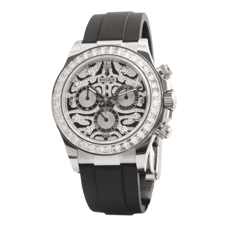Although the reference 116589TBR ??Eye of the Tiger?? is anything but your normal everyday , it is still a at its core, and it therefore features the same fan-favorite Oyster case that measures 40mm in diameter by 12.5mm thick, with 20mm wide lugs and a flat sapphire crystal protecting its dial. Similarly, just like other current-production models, the ref. 116589TBR features a Triplock crown, a solid caseback, and a pair of screw-down chronograph pushers, which collectively help provide it with 100 meters of water resistance, despite its overtly lavish appearance. Additionally, just like other solid gold watches that are fitted with Oysterflex bracelets, the ref. 116589TBR ??Eye of the Tiger?? features small lug-hoods that play the role of end-links and fill the gap between the edge of the case and where the bracelet attaches to the lugs.?