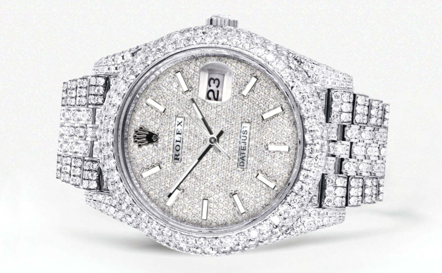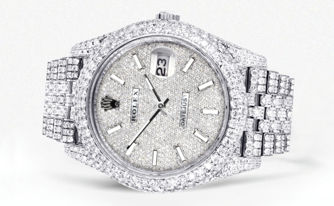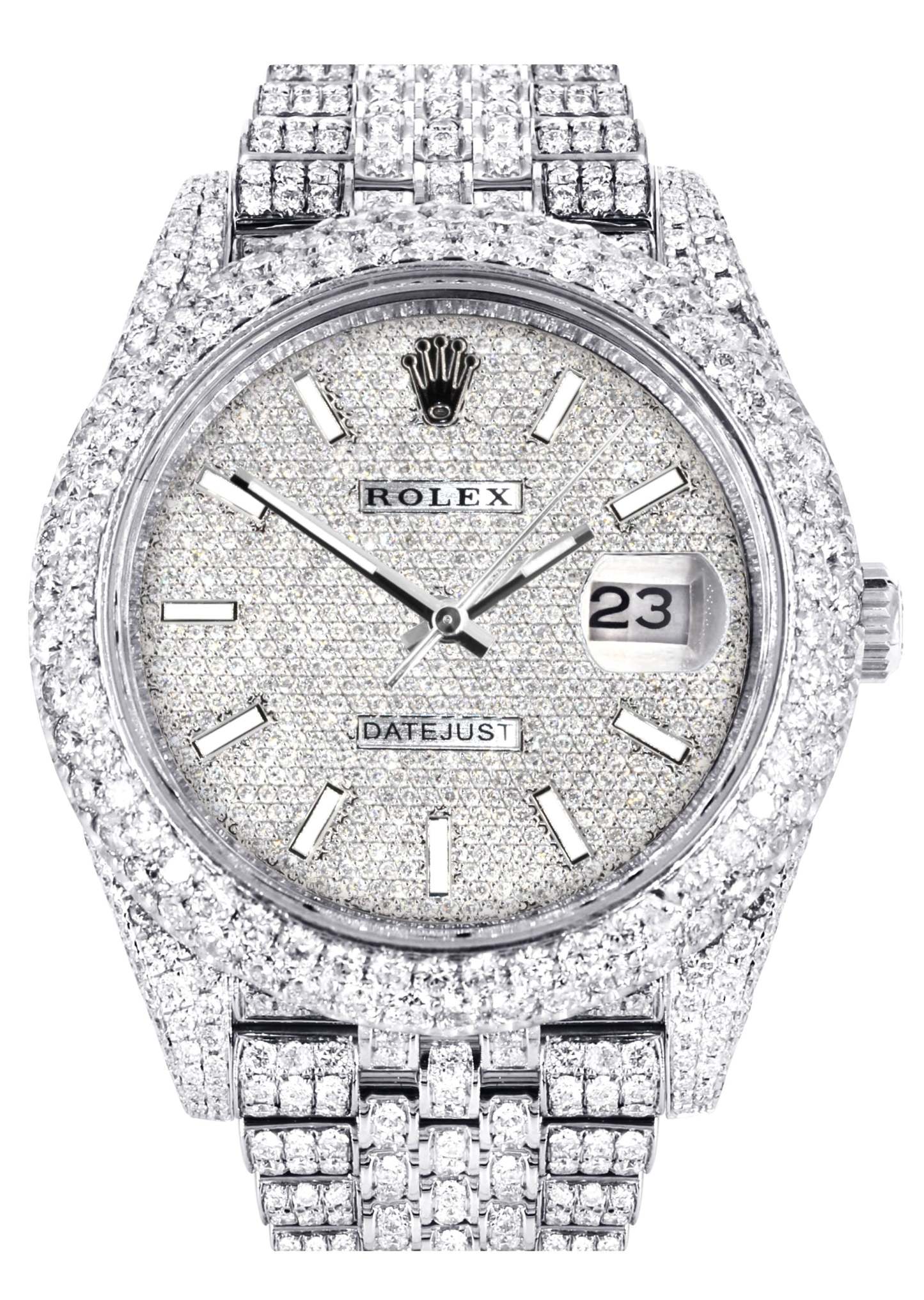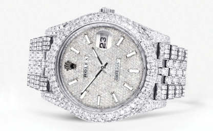 Womens Diamond Iced Out rothtlex Datejust 41 | 25 Carats Of Diamonds | Custom Diamond Dial | Two Row | Jubilee Band